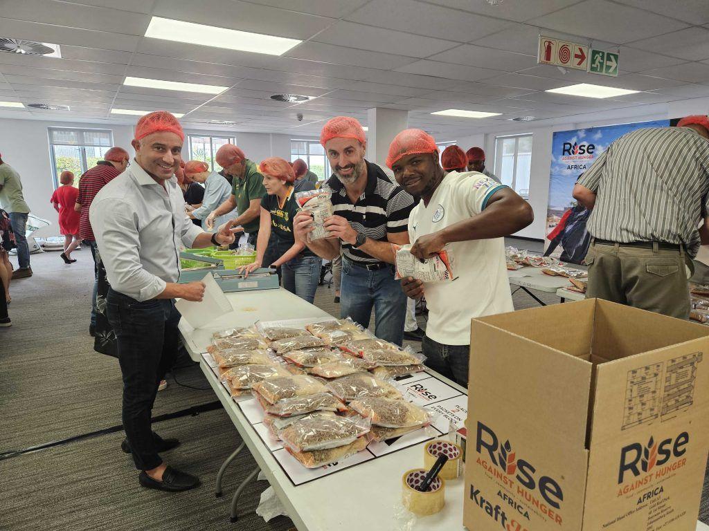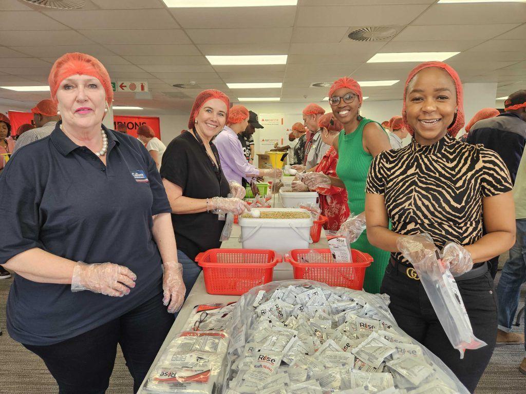 Julie: Earlier in 2023, my team and I joined a food packing event hosted by Rise Against Hunger, via our employee volunteering platform, The Red Thread. I was blown away by the impact we could make in such a short space of time and thought an event like this could seamlessly integrate in to one of our broker days. I reached out to our SED (Socio-economic Development) Manager, Pearl Sekgobela and forgood to help bring the event to life.