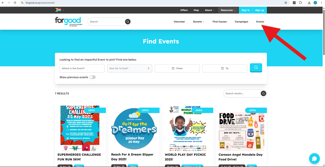 We are excited to launch our brand-new Events Feature, designed to make it easier for Causes and volunteers to connect and create meaningful impact. With Mandela Day (18 July) approaching, this is the perfect time to discover how you can get involved – whether you're hosting an event or looking to lend a helping hand.