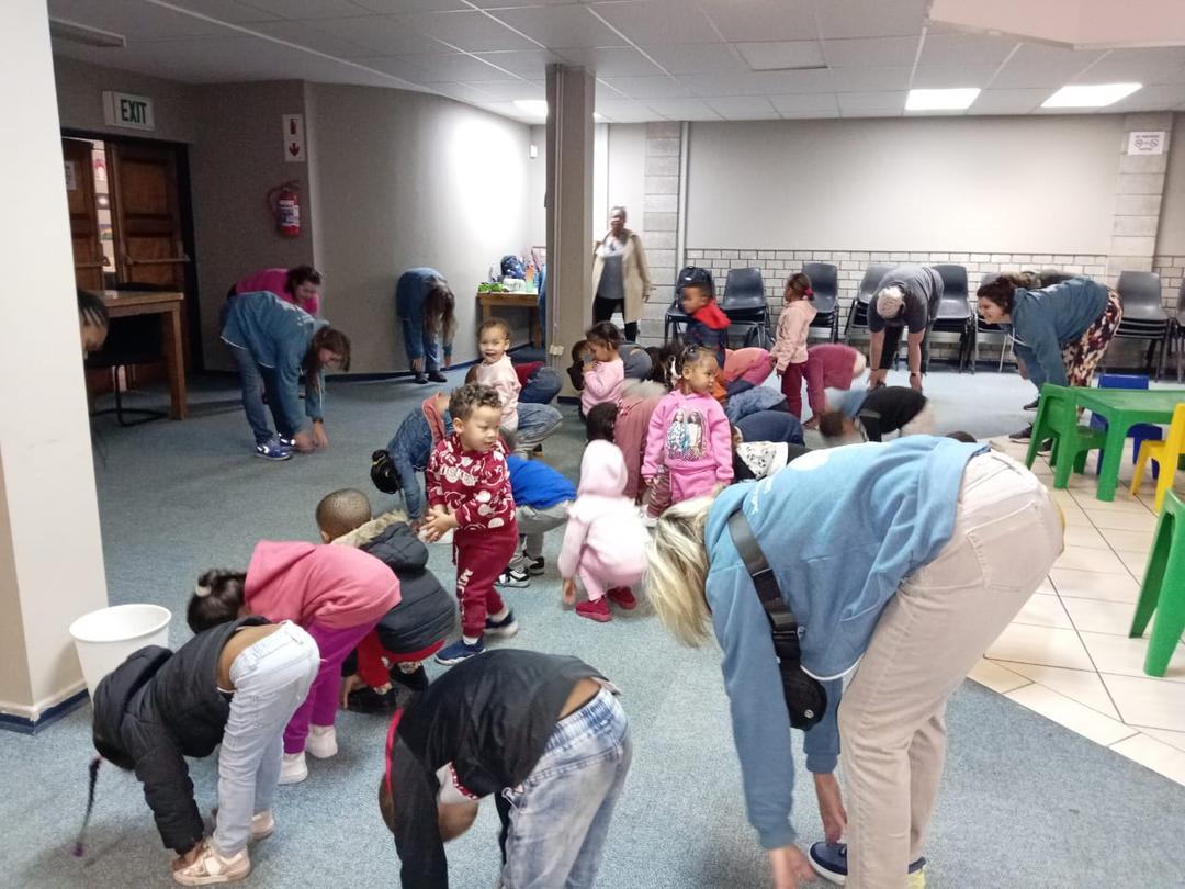 Additionally, the ECD center in Schauderville was visited by a group of Art Therapists from Ursuline College in the United States. The therapists spent a joyful morning engaging the children in creative activities, song, and dance. It was a memorable and enriching experience for the children, fostering self-expression and creativity.