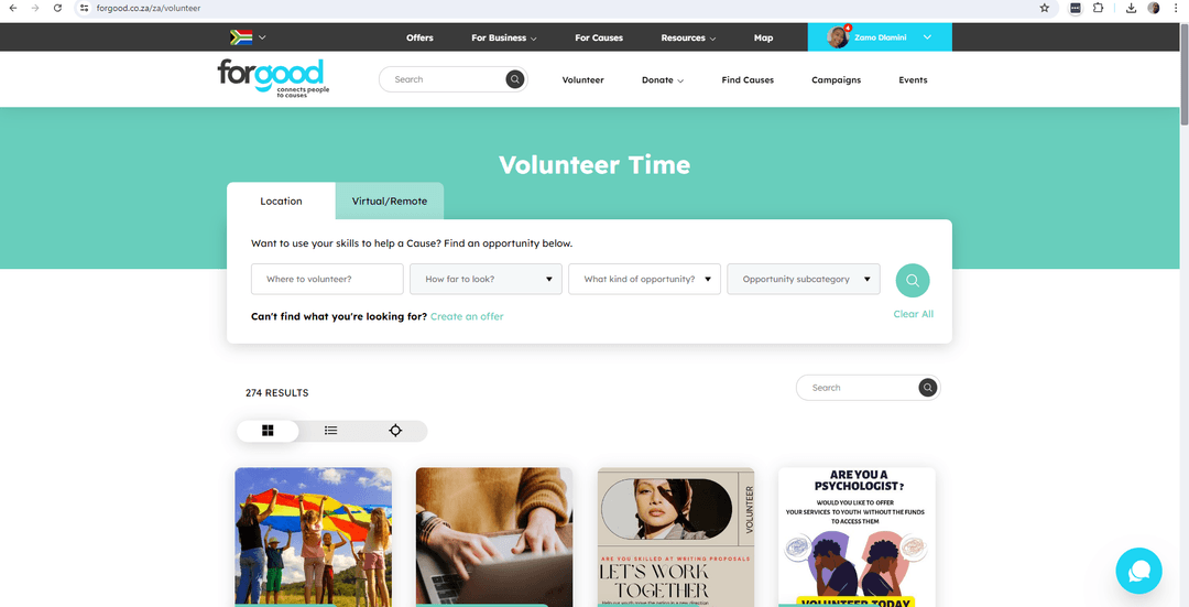 The great thing about volunteering with forgood is that it doesn't limit you in the ways you can volunteer. You can volunteer both your time and your skills! The Volunteer Time journey allows you to browse volunteering Opportunities by filtering the location, Cause category, and subcategory. Once you choose a Cause you'd like to volunteer with, you’ll be asked to provide all your necessary contact details and some background information about how you can help that particular Cause. Go try it out here → Volunteer Time